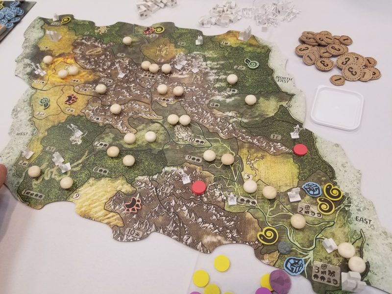 Complexity is a charge I’ve frequently seen levied against the game as a criticism, though I see it as a boon. The game isn’t necessarily that complex. It’s certainly a medium to medium-heavy game along the lines of Terra Mystica, but the rules are mostly intuitive and follow a logical order. The hard part, at first, is understanding the implications of what you can do and what you need to do given the pace of the game. The invaders move so quickly at first and you need to take losses in the early game and simply try to mitigate them as well as possible until you grow in power. Thinking two and three steps ahead is critical, and once an invader is set up to ravage next you’re probably too late to stop them.