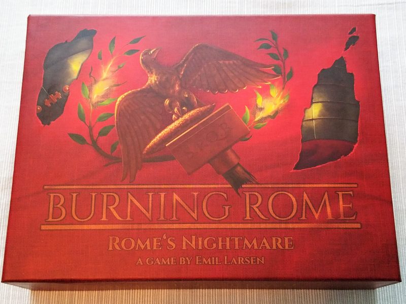 Burning Rome is a game I’ve had a very difficult time contextualizing. It comes in this saturated blood-red box with the subtitle “Rome’s Nightmare”. The